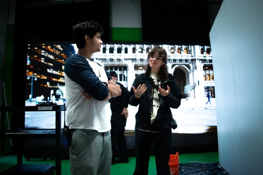 An innovative, content creation space featuring an advanced Vū LED virtual production wall, an immersive green screen environment, 50-foot cyclorama wall, and an integrated motion capture system. This high-tech studio enables real-time virtual cinematography, audio content production, and collaborative workflows between on-campus and remote industry partners. Supporting AI-enhanced filmmaking, interactive storytelling, and traditional studio practice, the VPS prepares students for the rapidly evolving media and entertainment industries.